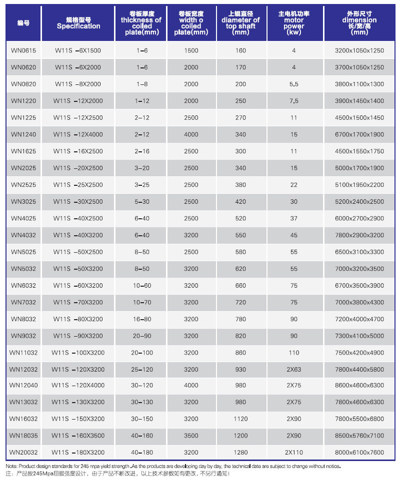 W11S 系列上輥萬能式卷板機(jī),引進(jìn)日本技術(shù)生產(chǎn),上輥可以垂直升降也可以水平方向移動(dòng)。采用上輥直接加壓方式,可以控制板材剩余直邊的長(zhǎng)度和形狀??梢跃碇贫喽位⌒?、方形、圓形、錐形、等工件。
