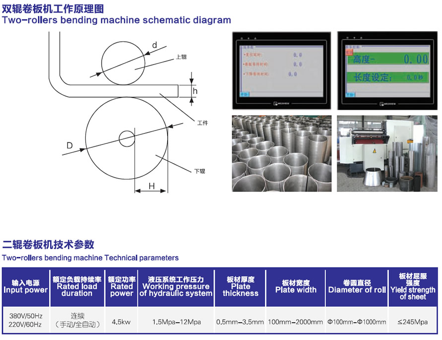 該設備自動化程度高,一次卷制成型,無明顯直邊,卷圓進度高,產(chǎn)品一致性好。提高了生產(chǎn)效率,降低了生產(chǎn)成本。是高效率、高精度、高自動化的卷板設備。廣泛應用于大批量制造薄壁管,汽車油桶、通風管道、煙囪、過濾器,太陽能熱水器,汽車排水管,儲液(氣)罐等等。