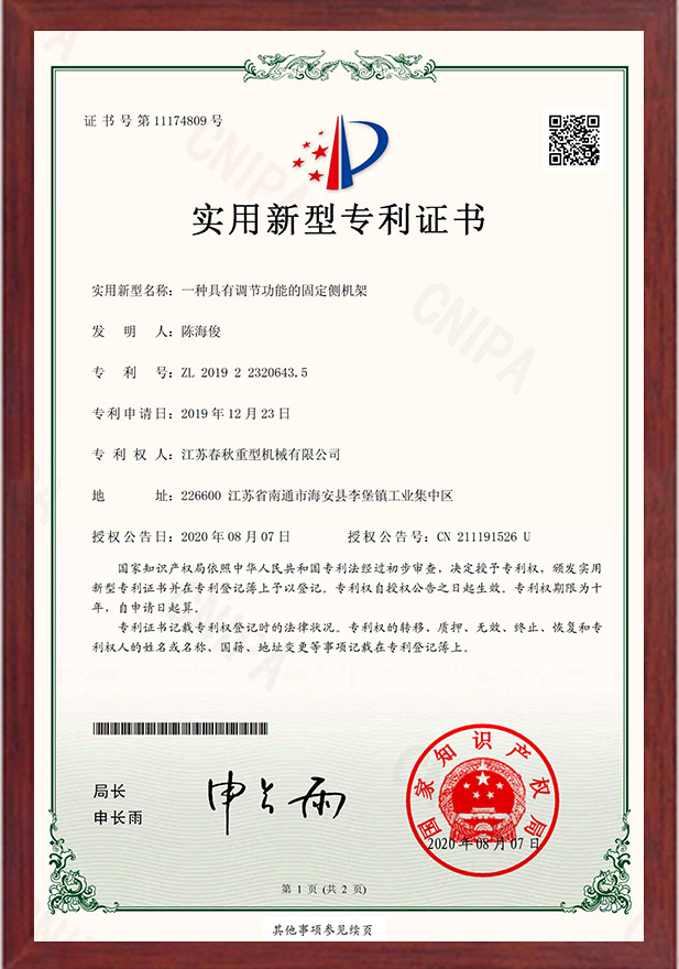 一種具有調(diào)節(jié)功能的固定側(cè)機架專利