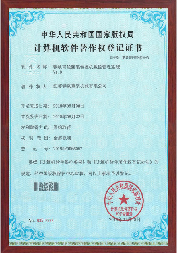 直線四輥卷板機(jī)數(shù)控管理系統(tǒng)軟件著作權(quán)